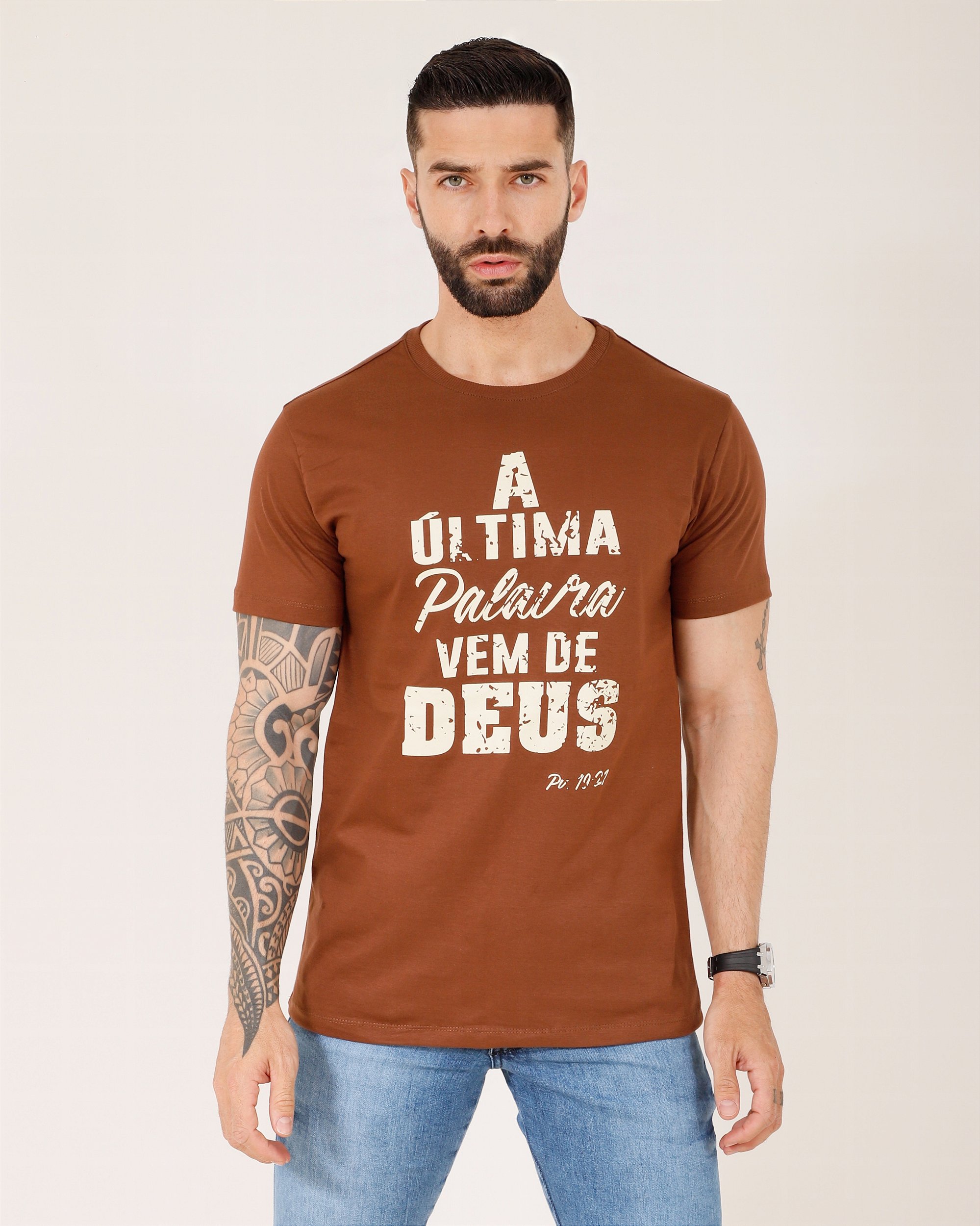 CAMISETA MASCULINA A ULTIMA PALAVRA - MARROM