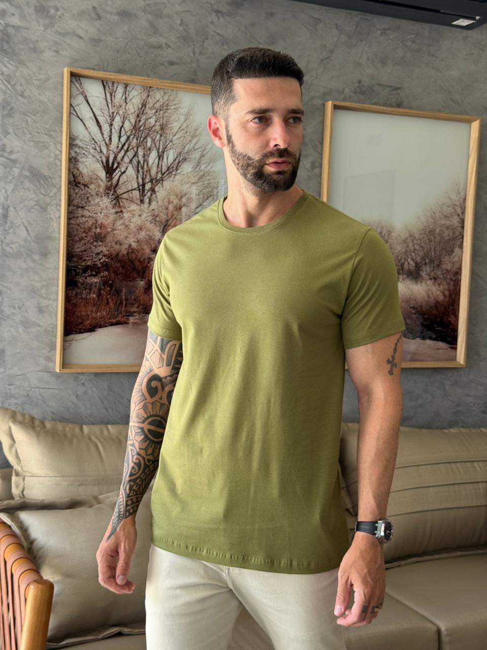 CAMISETA MASCULINA LISA - VERDE ORGÂNICO