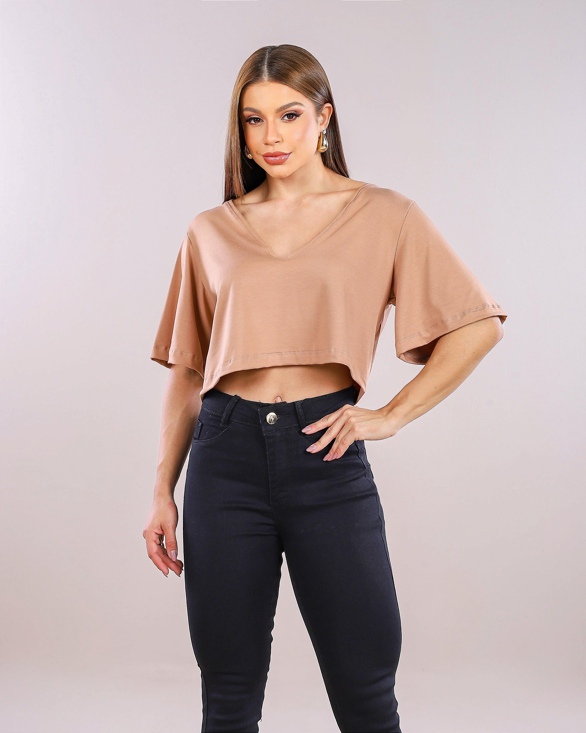 CROPPED GOLA V VISCOLYCRA - MOCHA MOUSSE