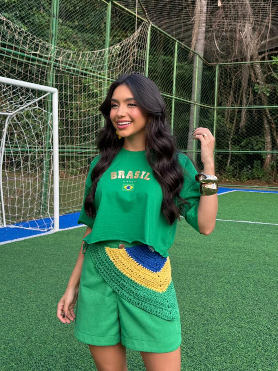 CROPPED OVERSIZED DTF BRASIL 5 ESTRELAS DOURADO - VERDE BANDEIRA