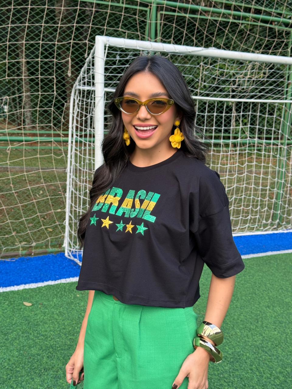 CROPPED OVERSIZED DTF BRASIL PAETÊ - PRETO