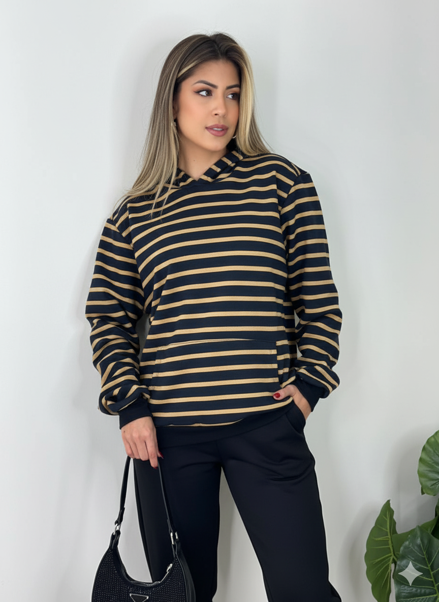 MOLETOM CANGURU LISTRADO - CARAMELO