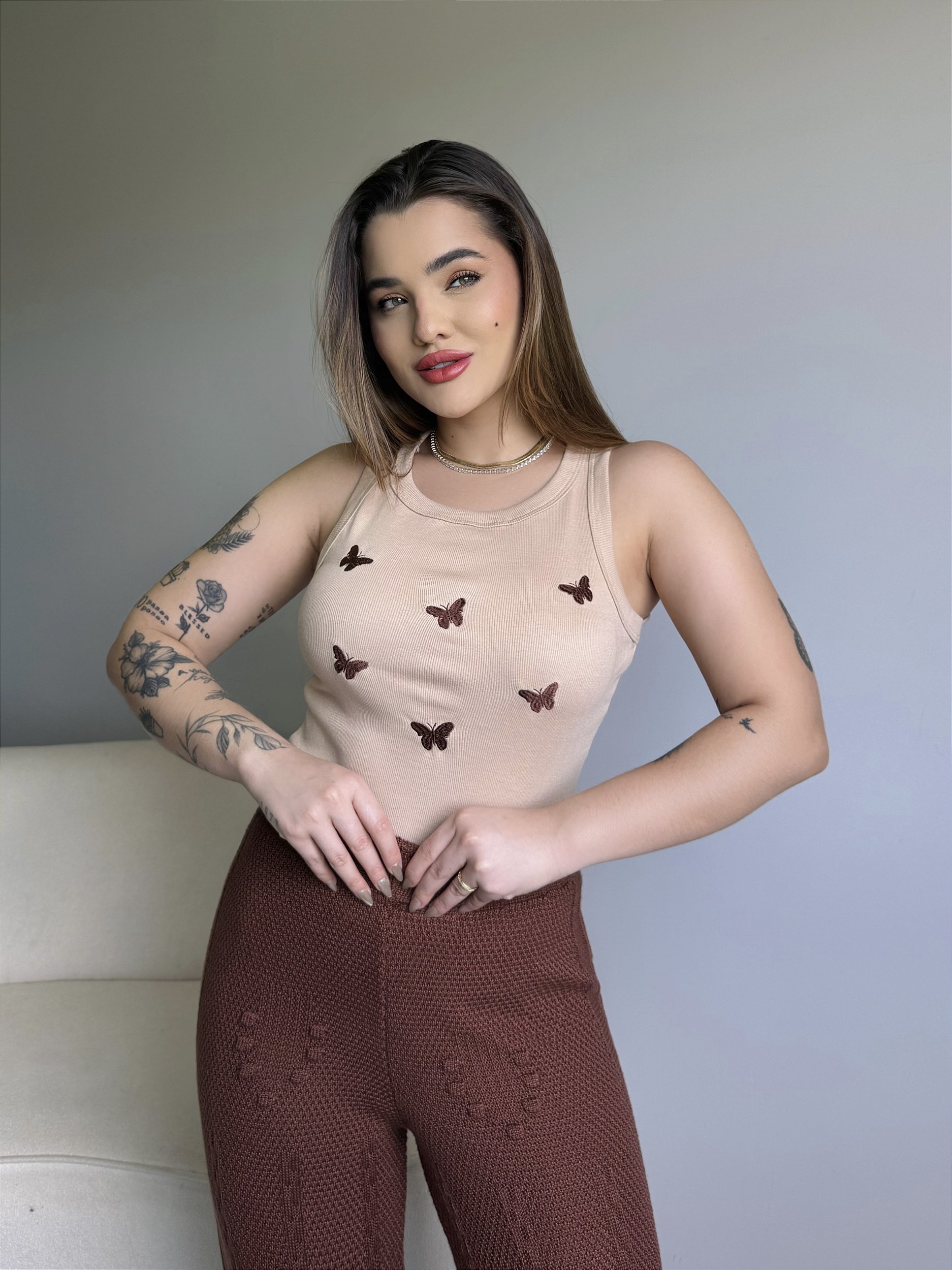 REGATA (BORDADA) BORBOLETINHA - BEGE DUNAS