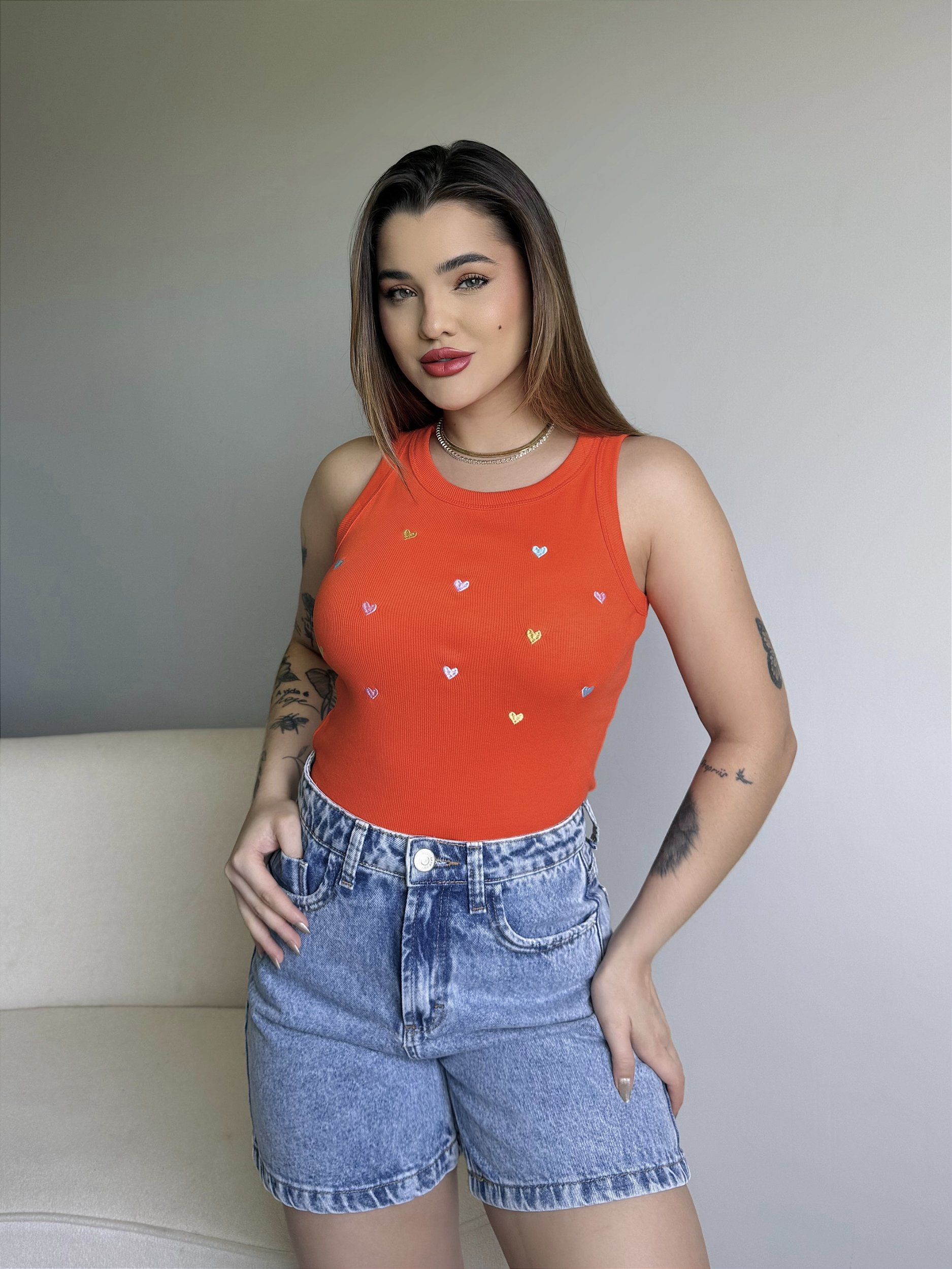 REGATA (BORDADA) CORAÇÃOZINHO - LARANJA