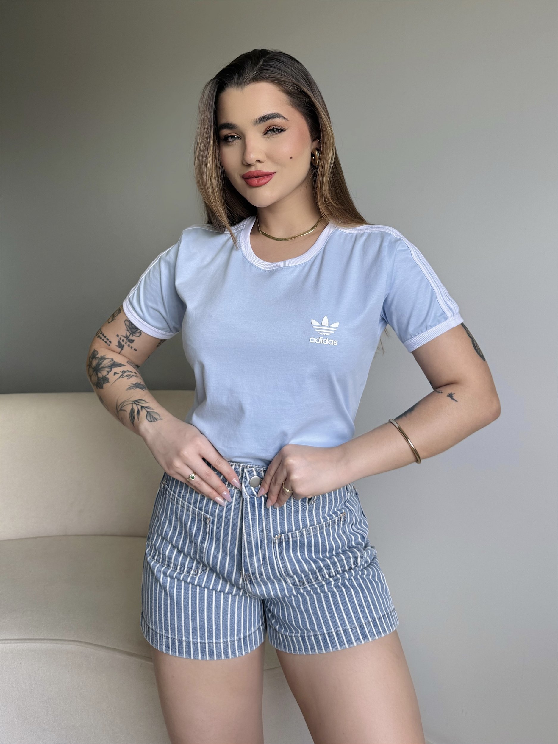 T-SHIRT ADIDAS LISTRAS COM PUNHO - AZUL CÉU
