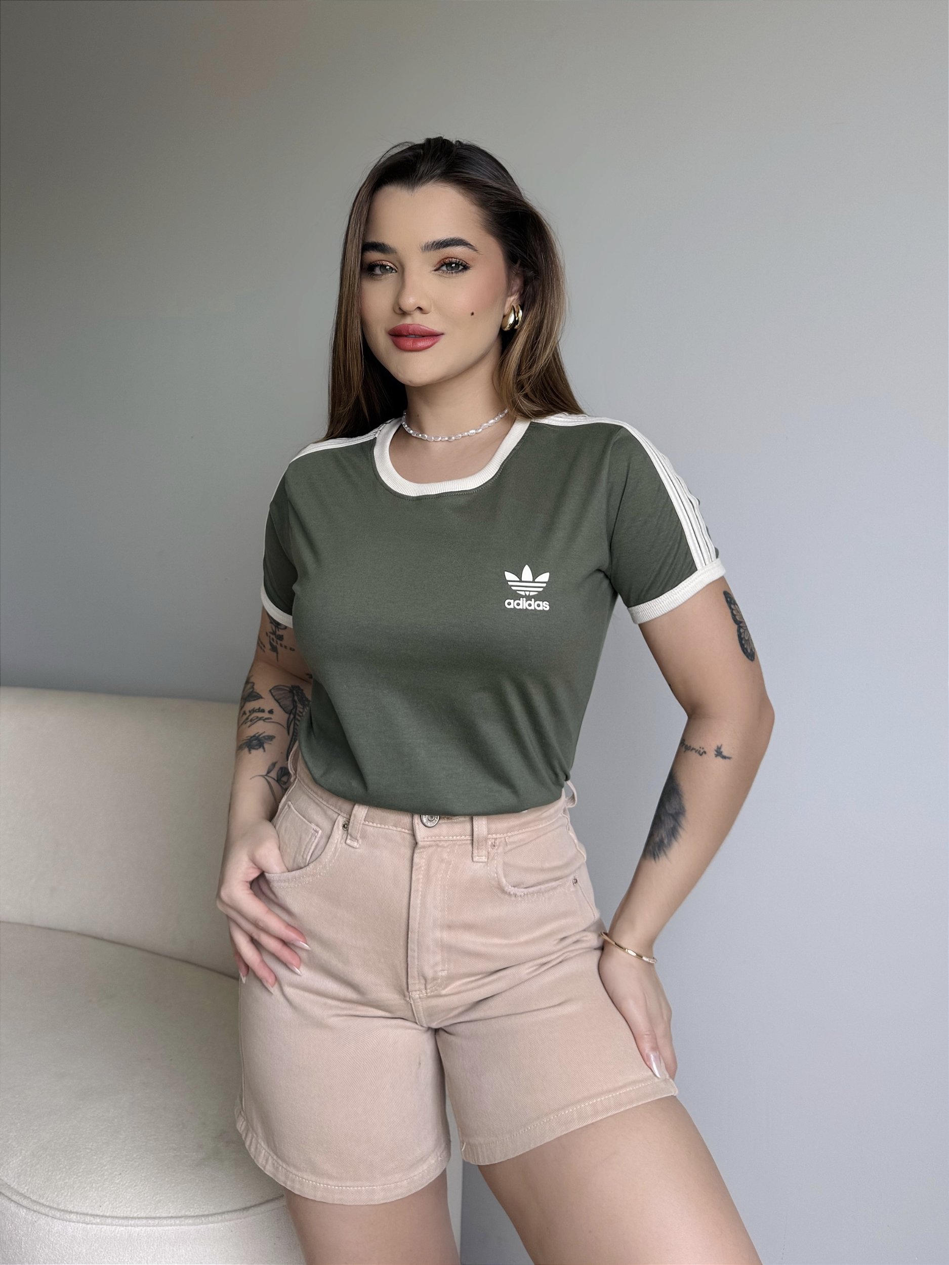 T-SHIRT ADIDAS LISTRAS COM PUNHO - VERDE CAMUFLAGE