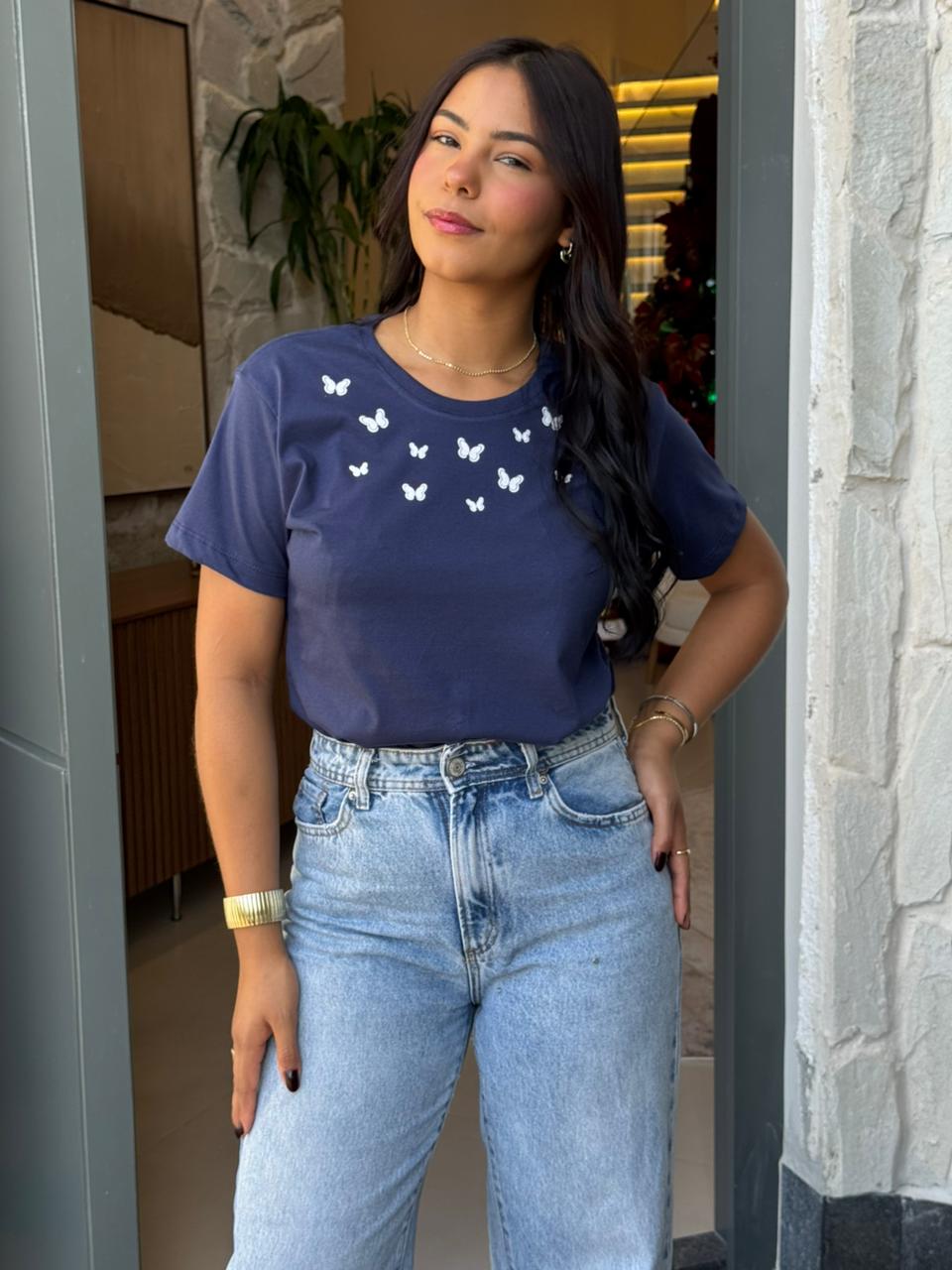 T-SHIRT BORBOLETAS - AZUL MARINHO