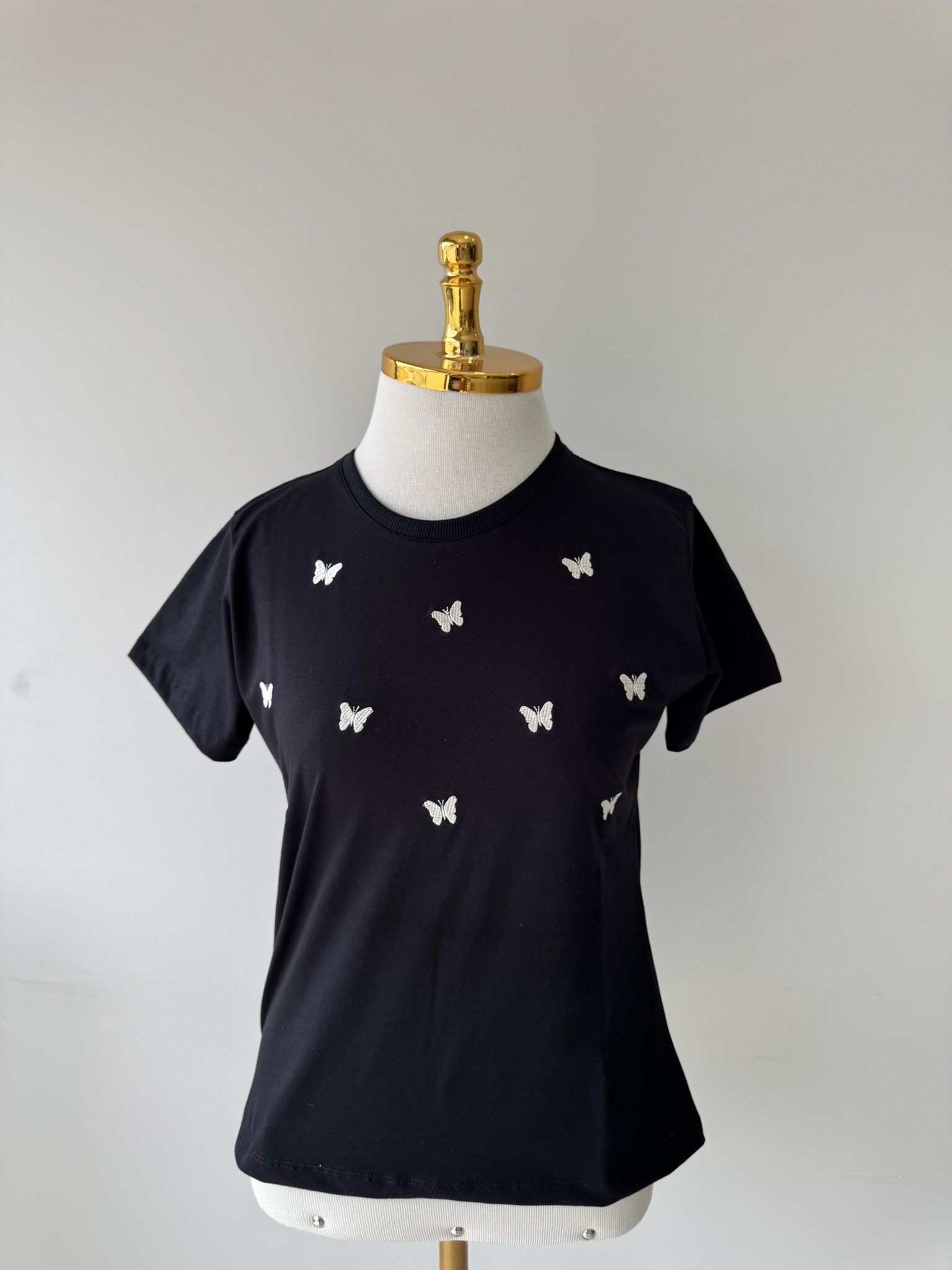 T-SHIRT BORBOLETAS (BORDADA) - PRETO