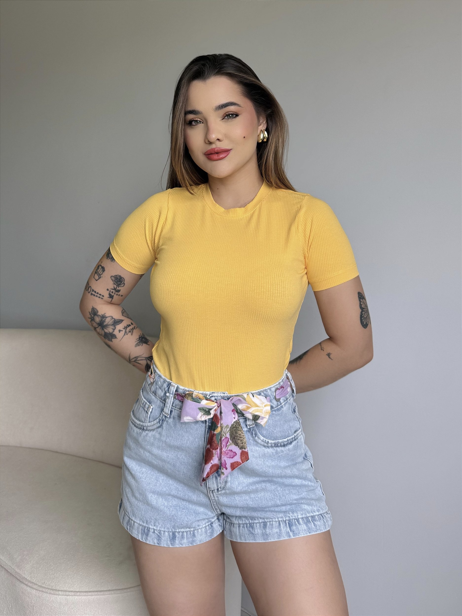 Nossa T-shirt Canelada Premium combina conforto, elegância e versatilidade em uma peça indispensável. Confeccionada em tecido canelado de alta qualidade, com toque macio e excelente caimento, ela se ajusta ao corpo de forma leve e confortável. O design minimalista valoriza a silhueta e permite composições que vão do casual ao sofisticado, ideal para o dia a dia ou produções mais elaboradas.