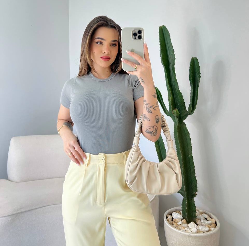 Feito com tecido canelado macio e confortável e modelagem ajustada que valoriza o corpo, permitindo liberdade de movimento.
