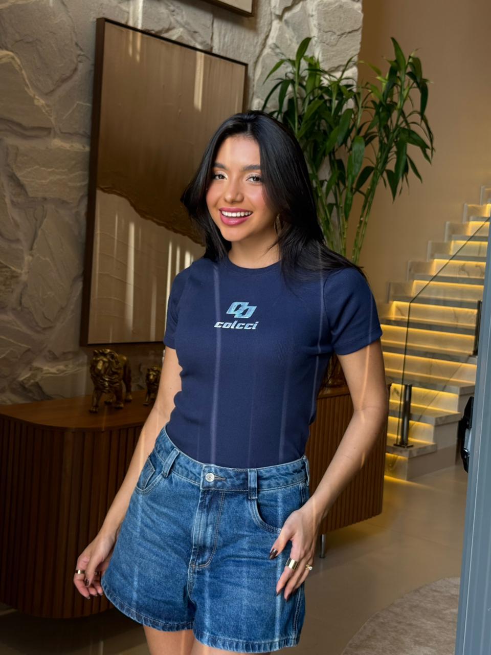 T-SHIRT CANELADA COLCCI ALTO RELEVO C/FOIL - AZUL MARINHO