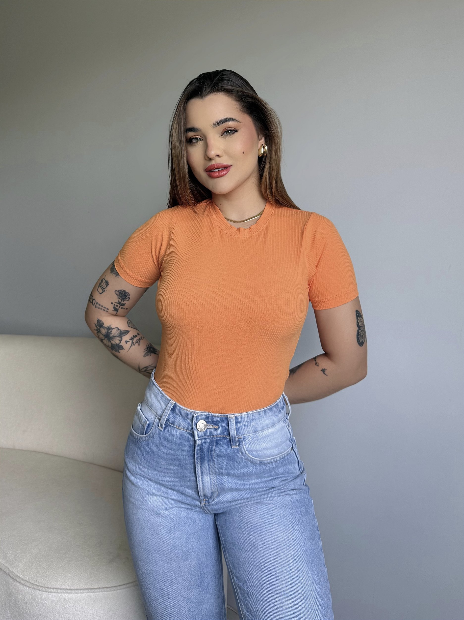 T-SHIRT CANELADA - LARANJA CRUCH