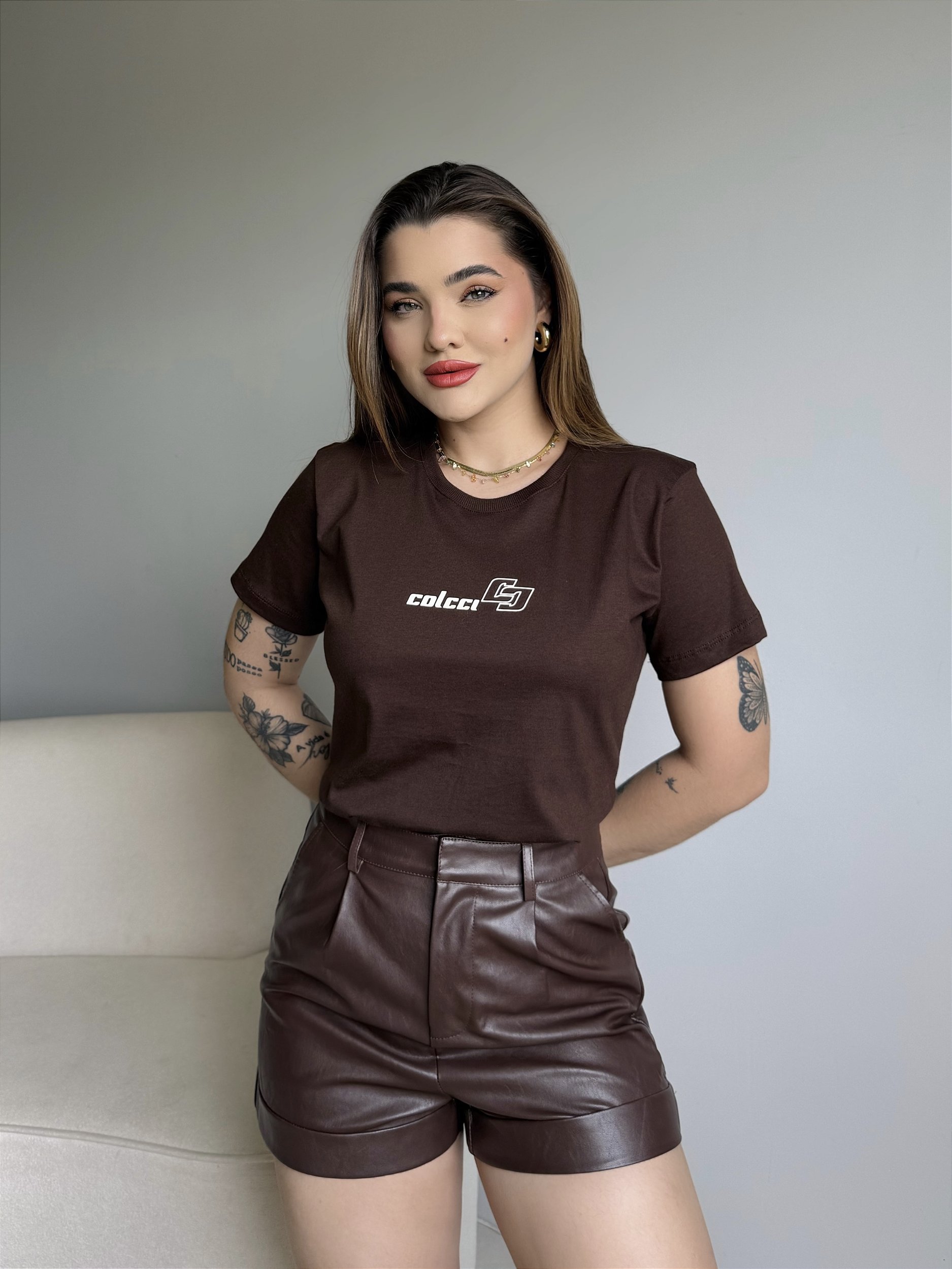 T-SHIRT COLCCI (BEGE) - MARROM EXPRESSO