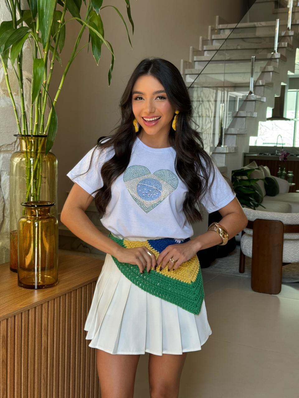 T-SHIRT DTF BRASIL CORAÇAO STRASS - BRANCO