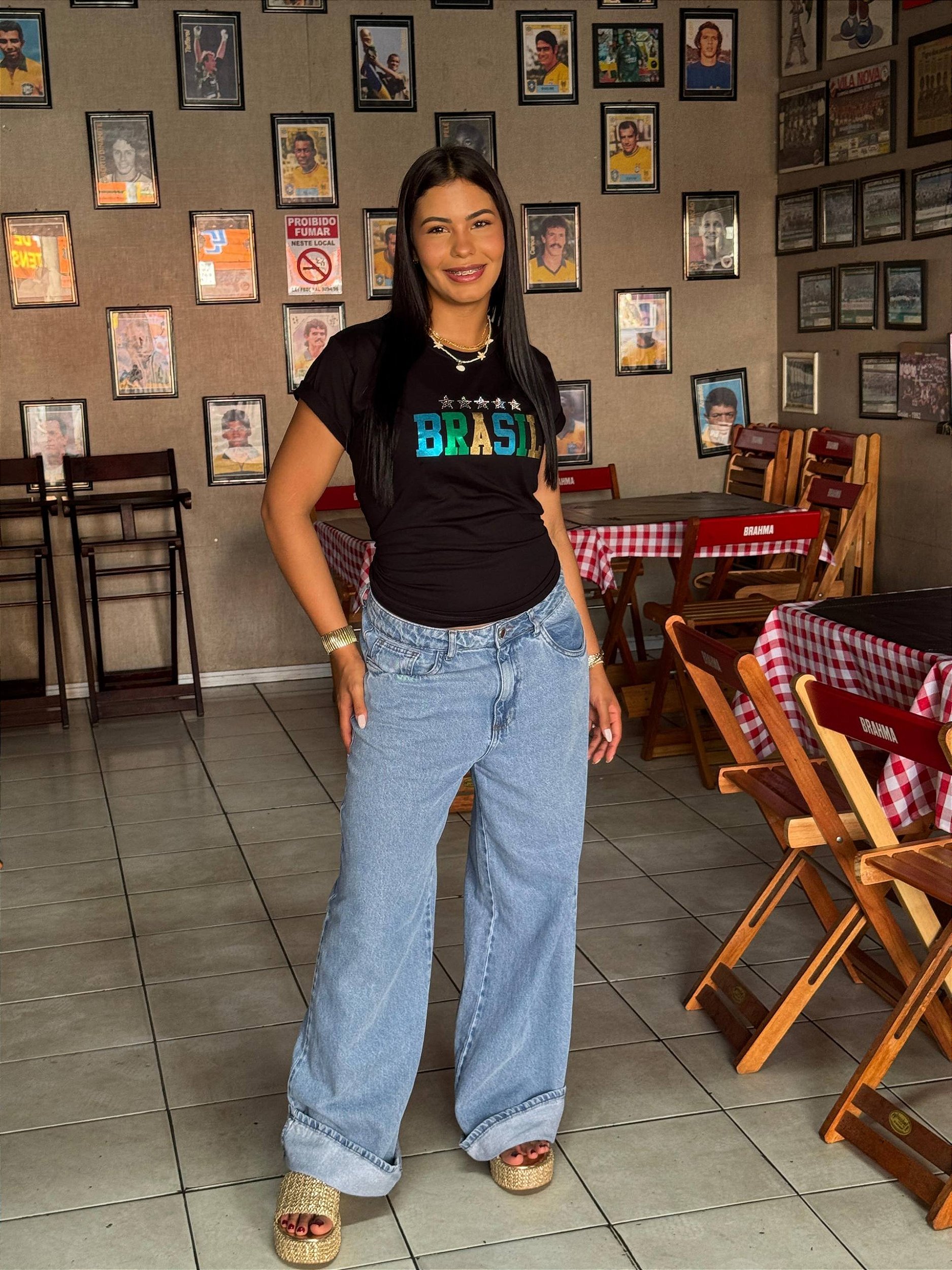 T-SHIRT DTF BRASIL ESTRELAS - PRETO