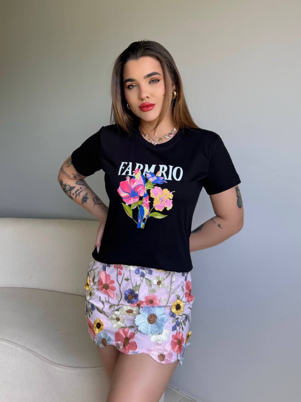 T-SHIRT DTF FARM RIO FLORES - PRETO