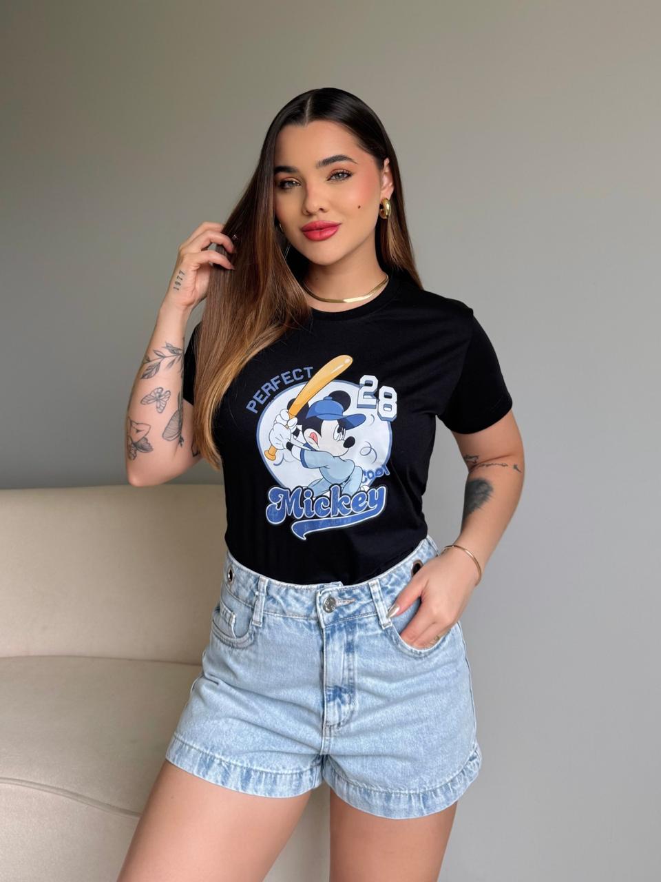 T-SHIRT DTF MICKEY BASEBALL - PRETO