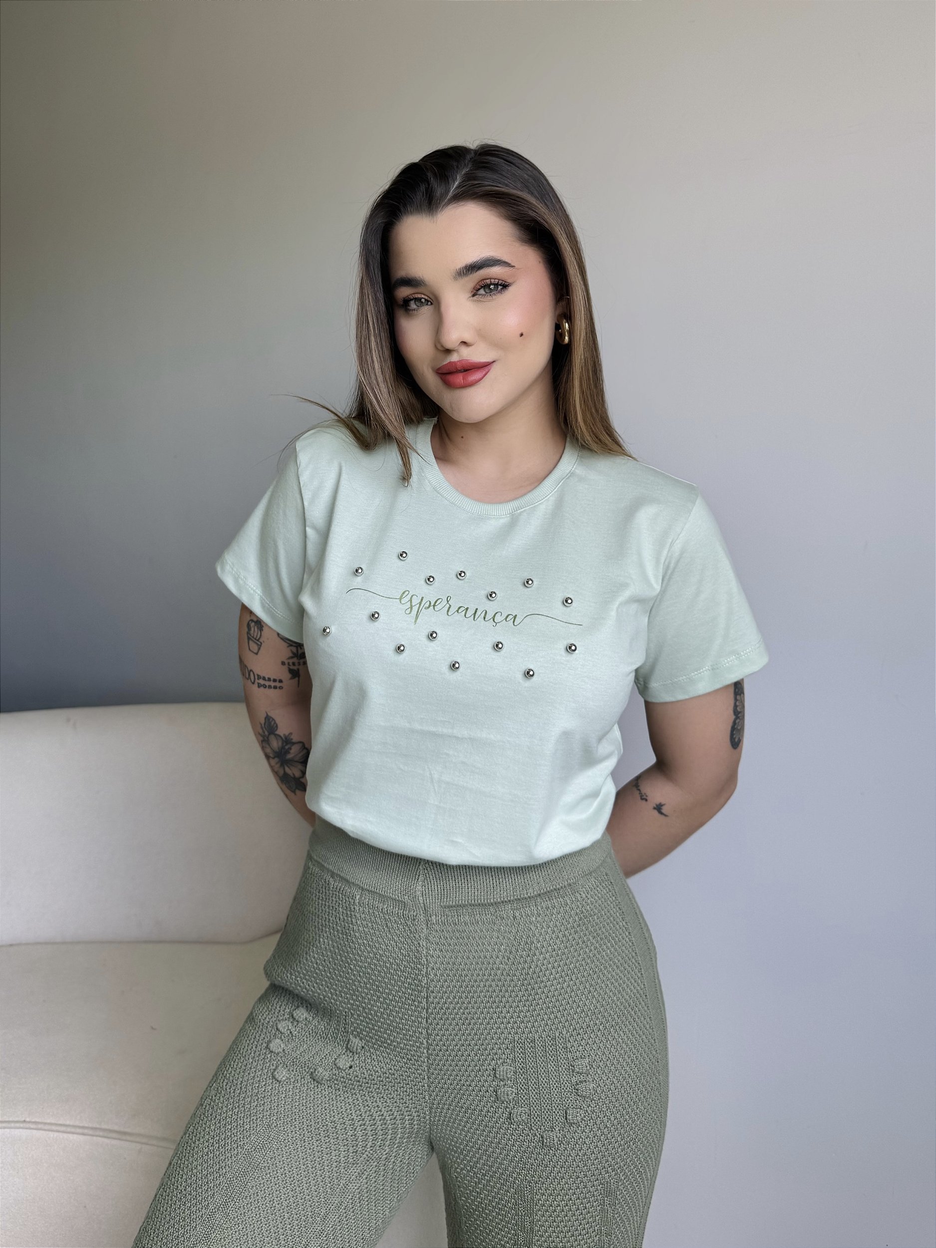 T-SHIRT ESPERANÇA C/APLICAÇÃO - VERDE NOSTALGIA