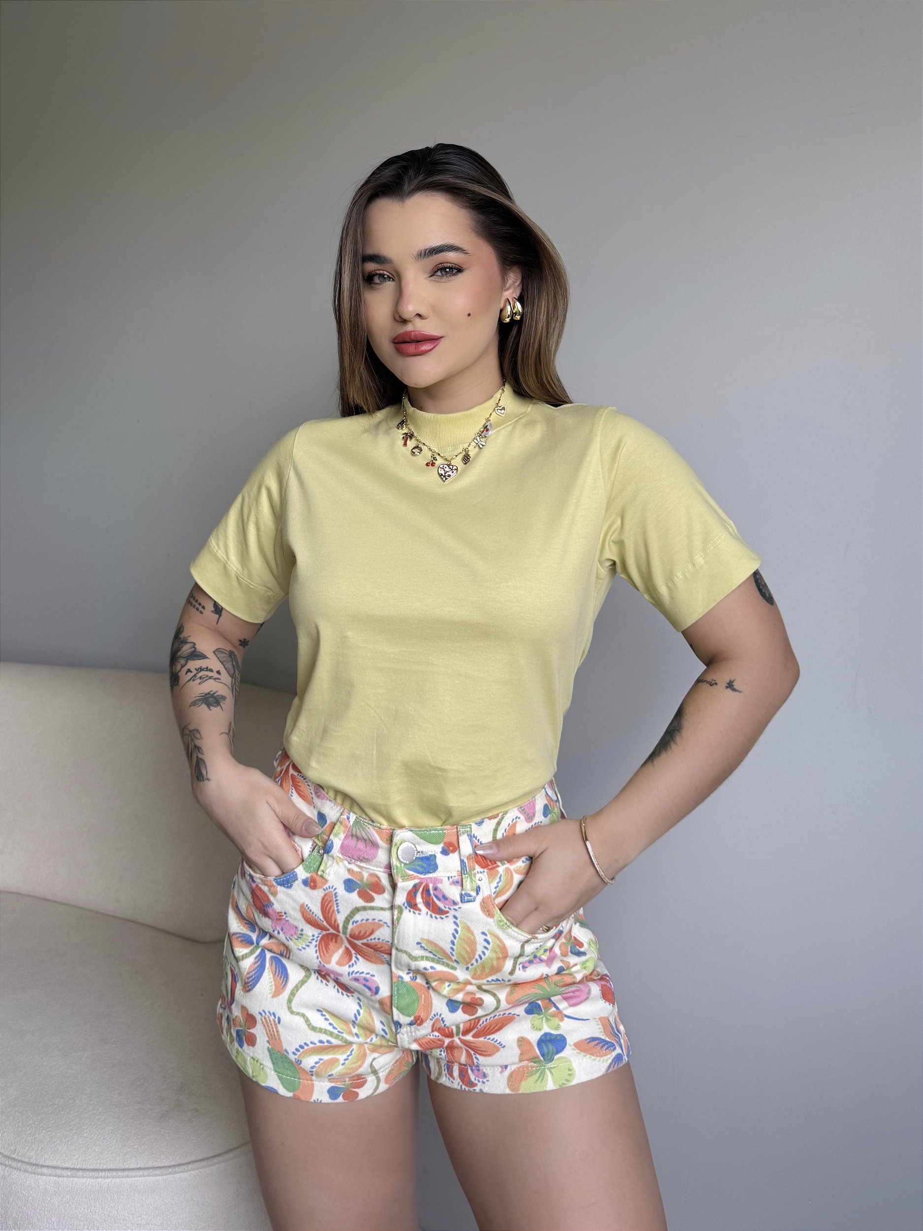 T-SHIRT GOLA ALTA LISA - VERDE LUMINA