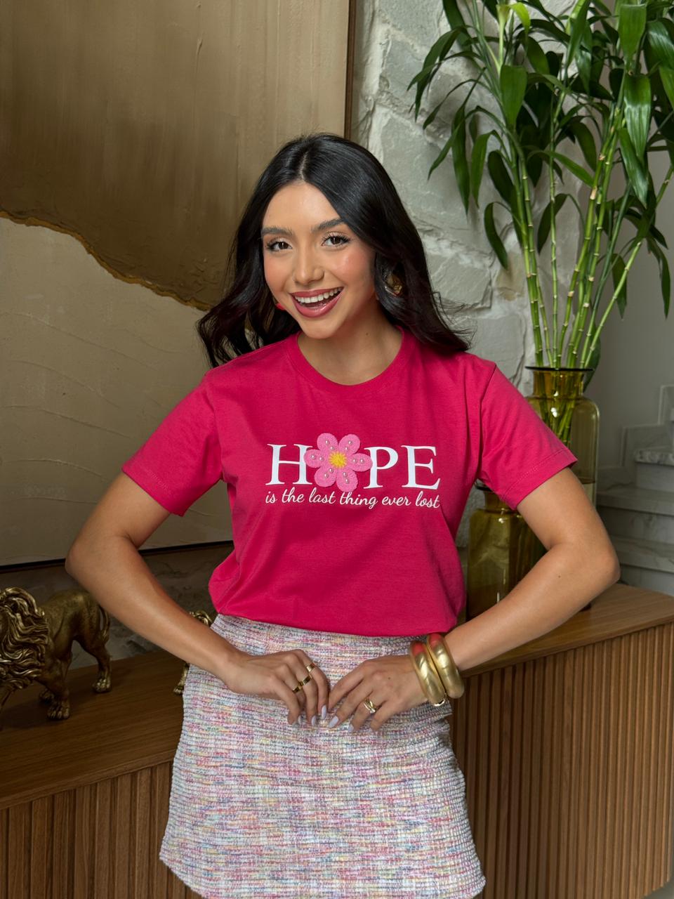 T-SHIRT HOPE C/APLICAÇÃO - ROSA PINK