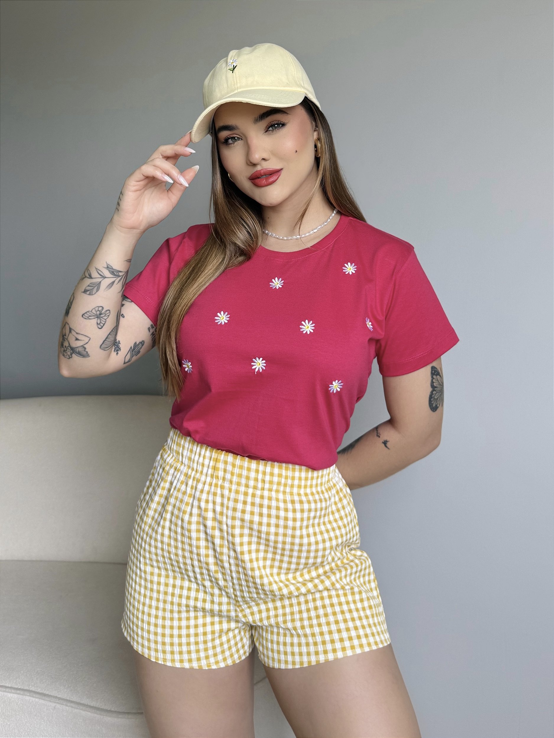 T-SHIRT MARGARIDAS (BORDADA) - ROSA PINK