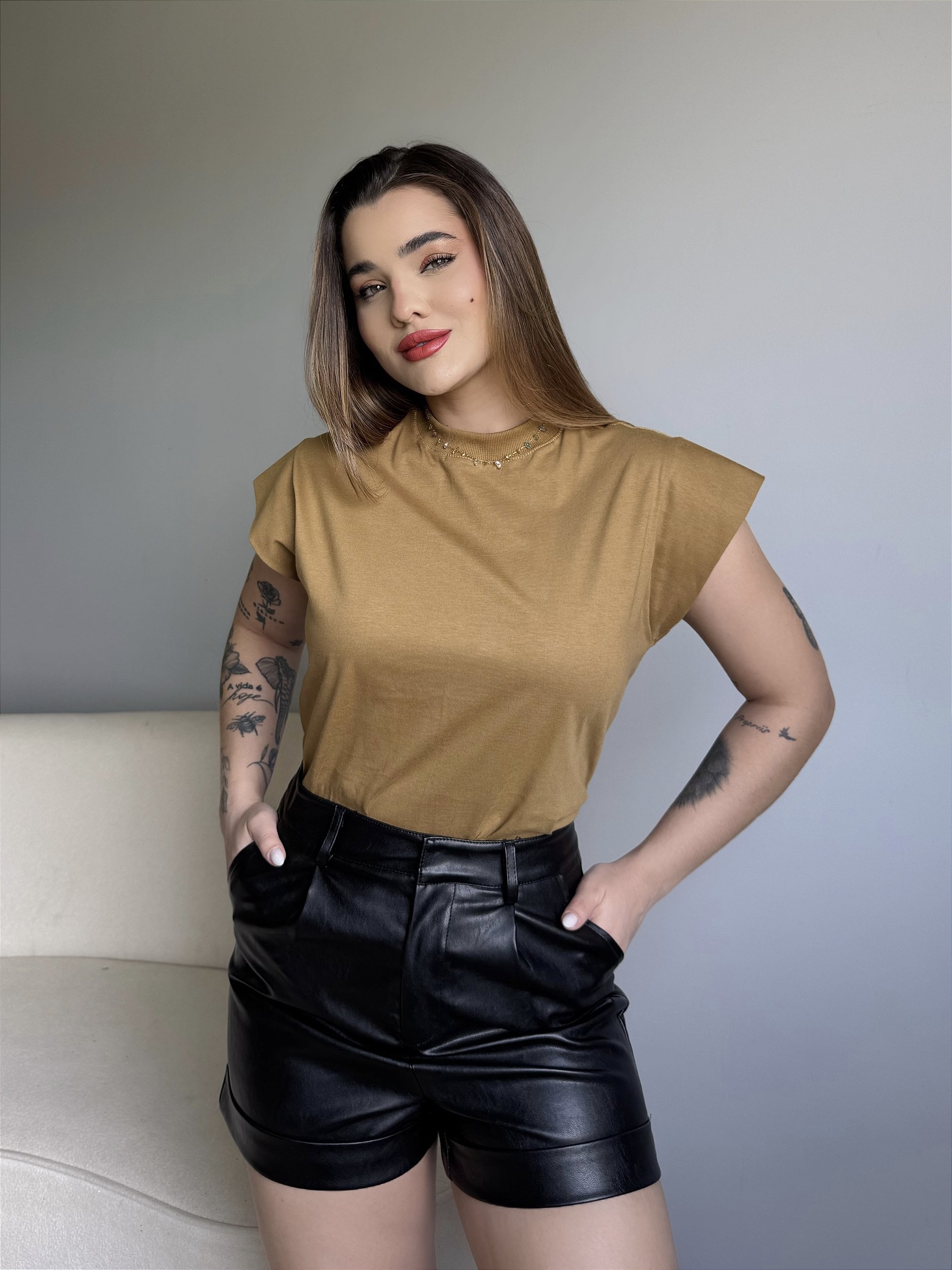Combine a gola alta com uma calça jeans para um look casual chic, ou aposte em uma saia midi para um visual mais elegante.