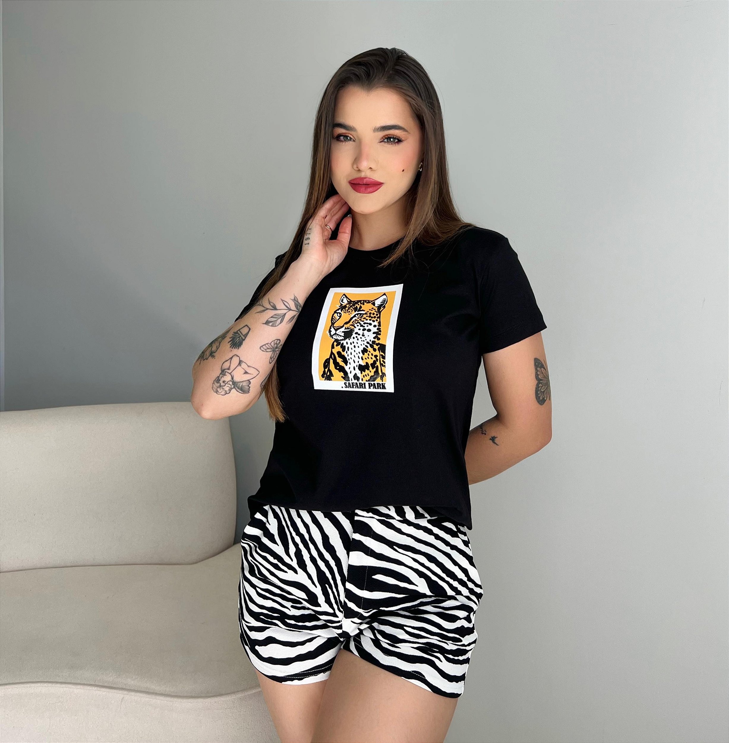 T-SHIRT ONÇA SAFARI PARK - PRETO