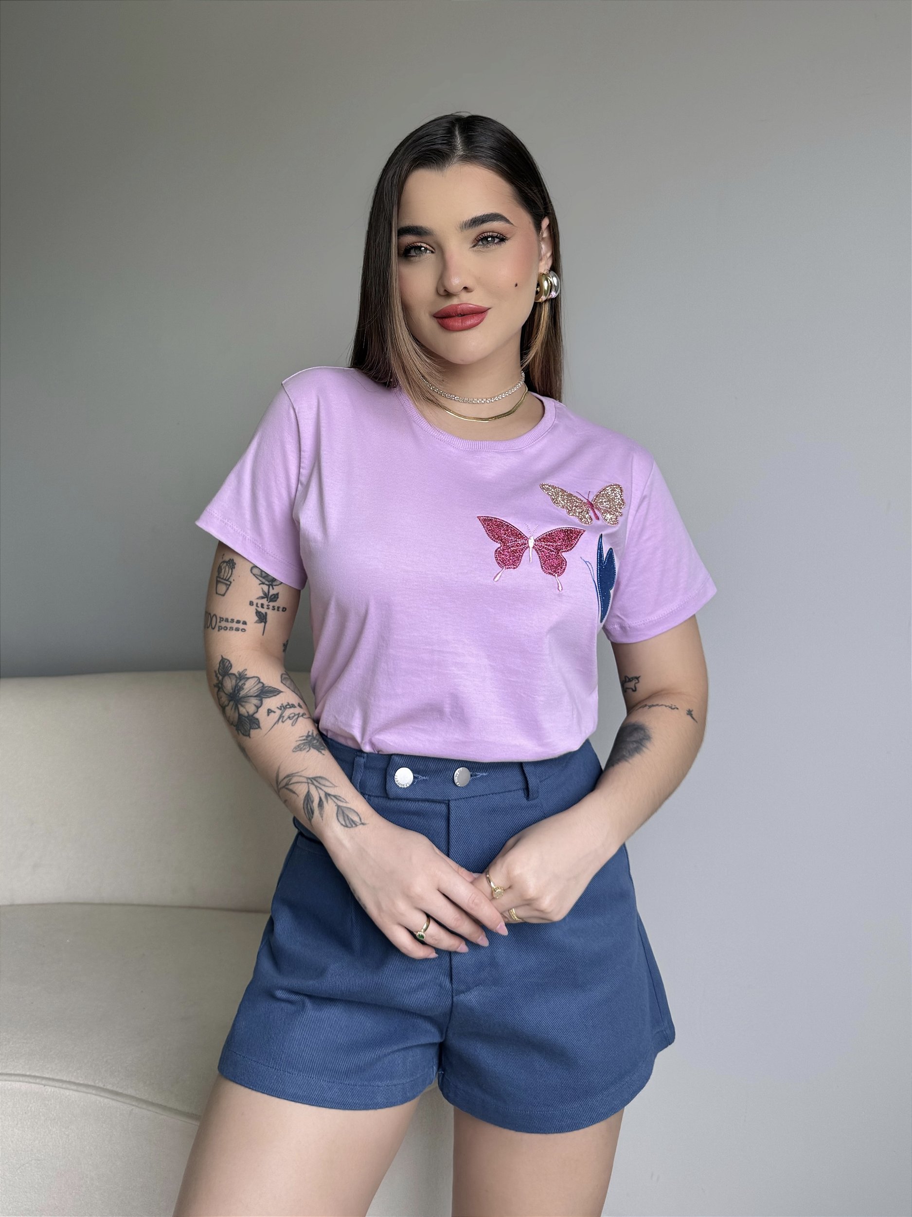 T-SHIRT TRIO BORBOLETA (BORDADA) - ROXO POESIA