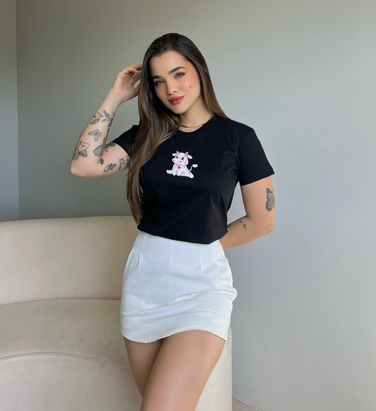T-SHIRT VAQUINHA (BORDADO) - PRETO
