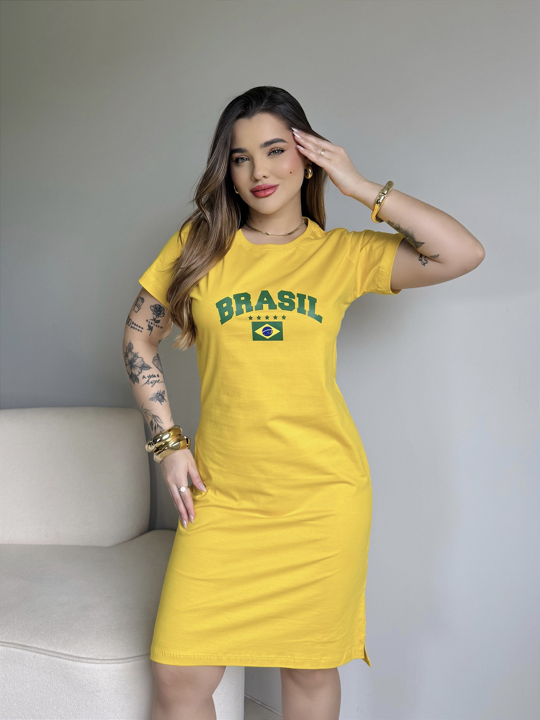VESTIDO DRESS DTF BRASIL 5 ESTRELAS VERDE - AMARELO