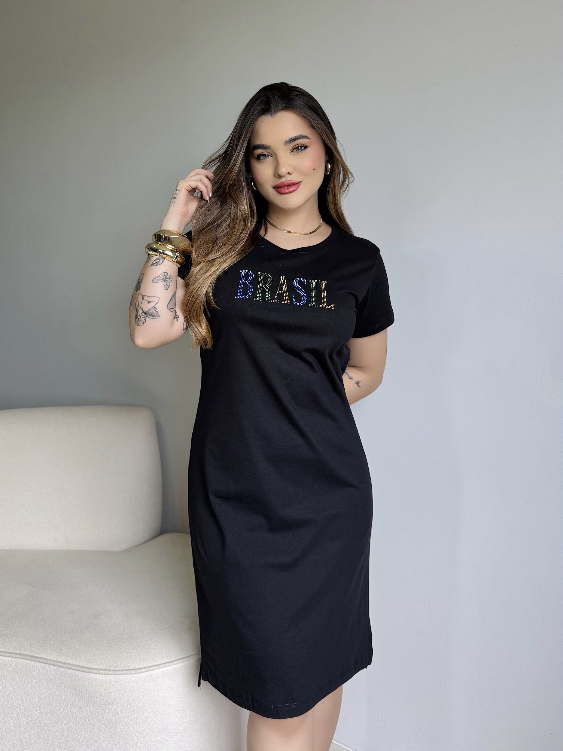 VESTIDO DRESS DTF BRASIL STRASS COLORS - PRETO